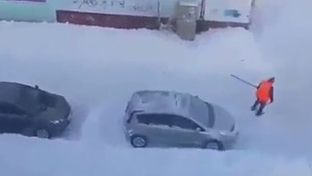 Коммунальщики в Уфе скинули с крыши лопату на машину