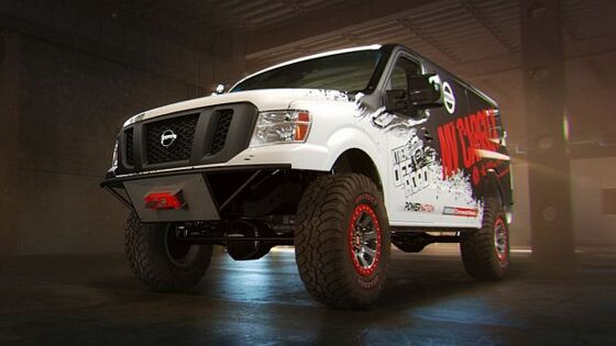 За основу был взят грузопассажирский фургон Nissan NV 2500 HD Cargo грузоподъёмностью полторы тонны. Его 5,6-литровый бензиновый двигатель V8 и пятиступенчатая автоматическая коробка передач были безжалостно демонтированы, а вместо них появился пятилитровый восьмицилиндровый турбодизель и шестиступенчатый «автомат». |photo-1| Новая силовая установка развивает 310 лошадиных сил и крутящий момент 753 Н•м. Вдобавок автомобиль получил полноприводную трансмиссию от соплатформенного пикапа Titan XD. Экстремальный фургон NV Cargo X получил специально разработанную внедорожную подвеску, благодаря которой дорожный просвет вырос до чудовищных 56 сантиметров. |photo-2| Задняя подвеска при этом сохранила стандартные листовые рессоры. NV Cargo X также получил дополнительную светодиодную оптику, усиленную защиту днища, силовой передний бампер с 4,5-тонной лебёдкой и 37-дюймовые внедорожные шины с «зубастым» протектором.