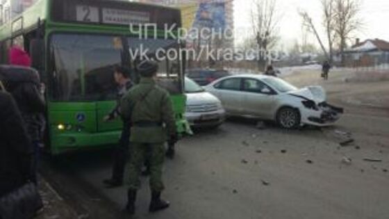 В Красноярске водитель иномарки пострадал при столкновении с автобусом