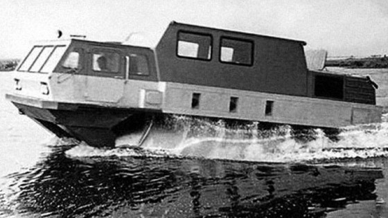 В Советском Союзе разрабатывали массу вездеходов для различных нужд. Некоторые грандиозные проекты так и остались невостребованными Техника высокой проходимости требовалась и военным, и спасателям, и для сельскохозяйственного использования. Чтобы удовлетворить все запросы потребителя, инженеры создавали совершенно невероятные конструкции. ЗиЛ-4904 Этот шнекороторный вездеход ПЭУ-3 стал самым большим в мире, его масса – 7 тонн, грузоподъемность – до 3 тонн. Габаритные размеры - 8,5 метров в длину, и по 3 в ширину и высоту . В движение огромный шнекоход приводится двумя 7-литровыми моторами ЗИЛ-375, суммарной мощностью 360 лошадиных сил. Интересна и схема трансмиссии – к каждому из двух шнеков привязана собственная автоматическая коробка передач, Крутящий момент идет через раздатку на редуктор главной передачи, имеющий два выхода на две АКП. По проходимости шнекороторные вездеходы превосходят любую другую технику, что гусеничную, что на воздушной подушке. ЗиЛ-4904, несмотря на свою чудовищную массу, еще и прекрасно плавает. Кроме того, шнекоход обладает отменной маневренностью – поворотный принцип как у гусеничной техники – за счет подтормаживания одной стороны, но шнекоход, кроме того, может двигаться непосредственно вбок. Скорость движения таких машин невысокая, этот шнекоход развивает максимальные 16 км/ч по снегу, 10,5 км/ч по воде и 7,3 км/ч по заболоченной местности. Но есть и несколько существенных минусов, исключающих их повсеместное использование. Во-первых, самостоятельно двигаться по твердым поверхностям такая техника не может, разрушаются как сами шнеки, так и покрытие. Кроме того, передвижение наносит существенный ущерб природе, разрушая грунт и корневые системы деревьев. Кроме того, ЗиЛ-4904 показывает грандиозный расход топлива, приближающийся к 100 литрам на 100 километров. В результате, было создано несколько ЗиЛ-4904, как в грузовой, так и в пассажирской модификации. Но применение им так и не нашли. ЗиЛ-4906. "Синяя птица" Трехосный полноприводный плавающий вездеход на базе ЗИЛ-4906. "Синяя птица" создавалась под определенную задачу – создание поисково-спасательного комплекса для эвакуации приземлившихся в труднодоступные регионы космонавтов. В движение машина приводится мотором ЗИЛ-130, который выдает всего 150 лошадиных сил, но может похвастаться 401 Нм крутящего момента. Причем двигатель брался не заводской, а собирался вручную. Коробка передач – пятиступенчатая механическая, плюс понижающий ряд, так что в сумме получалось 10 передач. Для движения по воде имеются два гребных винта. На дороге машина может развивать скорость до 75 километров в час, по воде скорость достигает 8 километров в час. Максимальный расход - 75 литров на 100 километров, на борту вездеход имеет 520 литров топлива в двух баках по 260 литров. Вездеход пригоден для доставки в необходимый регион вертолетами Ми-6 и Ми-26 и самолетами Ан-12 и Ил-76. Но послужить космонавтам он так и не успел, к 1975 году, когда вездеход был готов, космические спускательные аппараты получили более совершенные системы и стали приземляться в предусмотренные места, откуда космонавтов уже не надо было спасать. В результате, вездеходы отправились на службу в МЧС, в нефтедобывающую отрасль и другие организации где требуется техника повышенной проходимости. Всего было выпущено 14 пассажирских вездех
