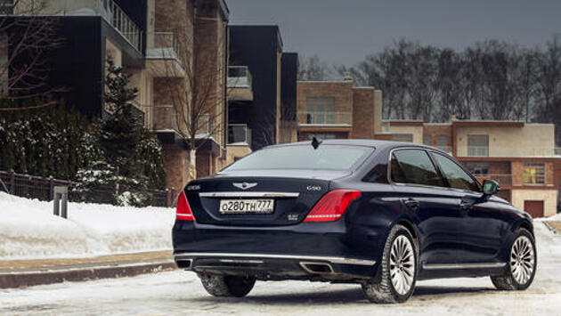 Огромный темно-синий седан покорно разворачивает зеркала и проливает на дорогу свет. Он почуял приближение хозяина и встречает его: разблокирует замки в ту самую секунду, когда тот тянет за мощную ручку двери, тихо закрывает доводчиком небрежно прикрытую дверь. Подает руль и настраивает сиденье в соответствии с его пожеланиями, едва хозяин щелкнет кнопкой запуска двигателя. И если в сердце владельца еще осталось место человечности, он не станет обижать смиренный автомобиль. В конце концов, это ведь как кинуть грязным словом в прислугу. Оскорбить того, кто принес тебе начищенные ботинки. Я привычно плюхаюсь на водительское место Genesis G90 и хлопаю тяжелой дверью, наслаждаясь этим сочным звуком. Знаете, такой «чпок» могут выдавать только по-настоящему тяжелые двери, причем встречать их должны толстенные резинки шумо- и прочей изоляции. Обожаю эту черту крутомобилей. Но я стараюсь чередовать хлопанье с использованием доводчика. Это ведь тоже по-своему приятно — почти беззвучно закрыть дверь. На улице прохладно, поэтому я включаю подогрев руля и умеренную прожарку ягодиц. Та-ак, что у нас там по времени? Кажется, опять немного опаздываю в редакцию. И это категорически прекрасно — будет повод дать джазу на шоссе! Ну, и оправдать лишние литры растраченного топлива, на которое мне решительно не хватает средств… Хотите верьте, хотите нет, но за время длительного теста аппетит 2265-килограммовой машины с 370 силами уложился всего в 13,4 литра на сотню. Конечно, отчасти это потому, что больше половины моего ежедневного 140-километрового маршрута приходится именно на шоссе. С другой стороны, я ненавижу ездить медленно и никогда не упускаю шанса выйти на хорошую крейсерскую скорость. Да и пробки (особенно вечерние: привет, проспект Мира!) никто не отменял. За сим считаю расход 3,3-литровой «шестерки» вполне адекватным. Хотя с учетом нечеловеческих будних маршрутов бензин для большого G обходится мне довольно дорого. А вообще, будь у меня побольше денег на 95-й, я бы каждый день необоснованно жарил за рулем G90. Видите ли, работа турбин по обе стороны новенького V-образного мотора мне очень нравится. Даже не так: она мне решительно по кайфу! При относительно скромном объеме GDI-агрегата и не таких уж сумасшедших силах по паспорту, здесь предостаточно мощи. Настоящей, которой можно пользоваться. Из-за того, что тяга равномерным слоем размазана от малых оборотов до рычащих, мистер G едет буквально всегда. Стоит только хотя бы вполовину утопить длинную напольную педаль — тяжеленный седан не то что ускоряется, а будто отталкивается от дороги, даже если крейсерская скорость уже давно превышает легально-разумную. И набирает, набирает, набирает… Получать кайф от напора движка помогают восьмиступенчатый «автомат», полный привод и недурственная настройка всей той электроники, что не дает мне приложить тяжеленный Genesis об отбойник. Про работу коробки передач я уже упоминал в первой части теста: она просто есть и просто работает. И никогда не заставляет обращать на себя внимание. Думаю, это как раз то, чего ждешь при словах «автоматическое переключение передач». А вот электронные мозги корейского сверхседана понравились мне еще больше. Те, которые отвечают за распределение тяги между четырьмя ведущими и вращение каждого из них в отдельности. Если я в спокойном режи