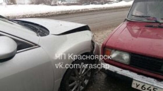 В Красноярске на скользкой дороге столкнулись ВАЗ и Mazda: двое пострадали