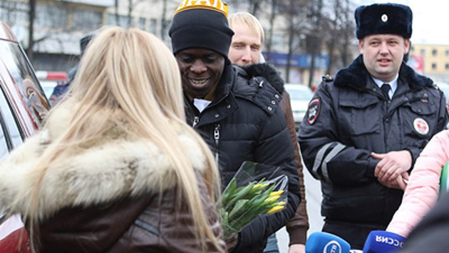ЕКАТЕРИНБУРГ, 7 марта. /ТАСС/. Нападающий футбольного клуба "Урал" Чисамба Лунгу совместно с сотрудниками ДПС ГИБДД Екатеринбурга поздравил женщин-водителей с наступающим Международным женским днем. Об этом сообщает пресс-служба "Урала". "В преддверии Международного женского дня сотрудники ДПС ГИБДД Екатеринбурга по традиции останавливали автомобили, которыми управляют представительницы прекрасного пола. Вместо штрафов их ждал приятный сюрприз - инспекторы вместе с нападающим футбольного клуба "Урал" Чисамбой Лунгу поздравляли девушек-водителей с наступающим праздником, дарили им цветы и клубную атрибутику", - говорится в сообщении. Также отмечается, что в Замбии, где родился Лунгу, тоже празднуют Международный женский день, но в таком массовом поздравлении представительниц прекрасного пола он принимал участие впервые. "Мне приятно было поздравить девушек. Завтра я тоже буду поздравлять с 8 марта, но уже своих самых близких - жену и дочек. Наверное, сходим в ресторан после тренировки. Что буду дарить - пока секрет! Не хочу говорить, чтобы сюрприз удался", - цитирует пресс-служба Лунгу.