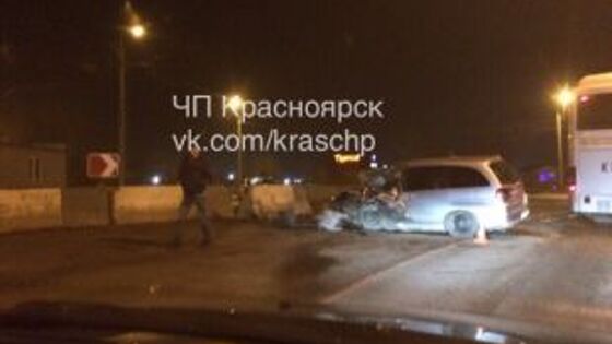 Nissan влетел в бетонную стену на Северном шоссе в Красноярске