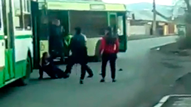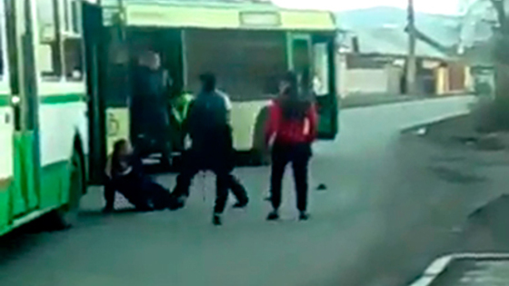 В Красноярске водители автобусов подрались из-за места на остановке: видео