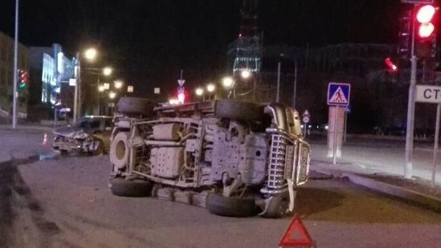 В Тюмени Land Cruiser протаранил "Ладу" и перевернулся