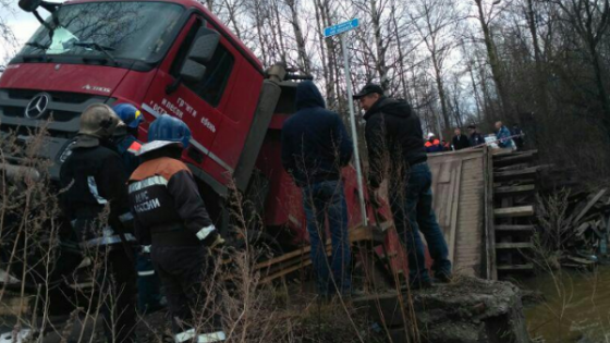 В Санкт-Петербурге водитель самосвала пытался переехать по мосту через реку Охту. В результате мост провалился и машина повисла на разрушенных конструкциях. Водитель самосвала, загруженный 4 тоннами щебенки, переезжал через короткий мост на реке Охта. Конструкция не выдержала и мост поломался пополам. В результате автомобиль застрял, повиснув на разрушенных остатках моста. На месте происшествия работают спецслужбы. Задействовано 12 человек и несколько единиц спецтехники. Грузовой автомобиль пытаются вытащить при помощи эвакуатора. По предварительной информации, деревянный мост обрушился, так как не предназначен для передвижения грузовых автомобилей. Водитель сообщил, что раньше не проезжал по этому мосту. Сам он не пострадал.