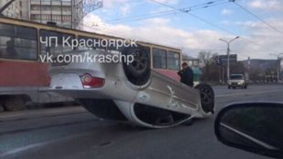 В Красноярске «Волга Сайбер» эффектно перевернулась на крышу