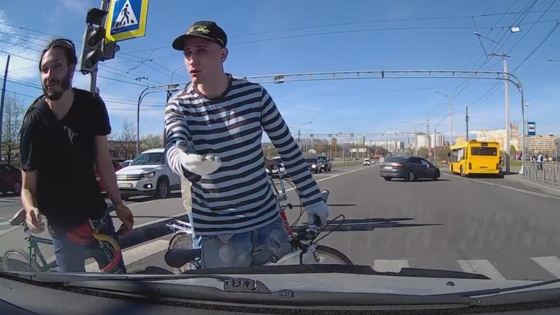 Настырный владелец легковушки намеренно зацепил велосипедиста на переходе в Санкт-Петербурге, когда тот отказался спешиться. Телеканал «360» публикует запись с камеры регистратора. «Пешком, пешком на велосипедах! Пешком по пешеходному переходу! Давай вставай!» — напирал водитель, около 16:00 в минувший понедельник, 22 мая, повстречавшийся с тремя велосипедистами при повороте на улицу Партизана Германа в Красносельском районе Северной столицы. «Двухколесные» покинуть седла отказались, и тогда мужчина пошел в атаку — выкрутив руль, он зацепил один из велосипедов, после чего припарковал автомобиль и отправился выяснять отношения с «нарушителями» на воздухе. К пониманию противникам прийти не удалось, но и обострения конфликта удалось избежать, так что спустя полторы минуты все разошлись по сторонам.