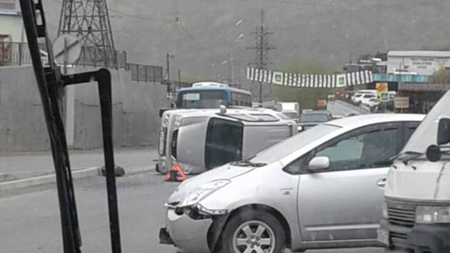 Во Владивостоке в районе площади Баляев перевернулся автомобиль