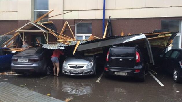 Ветер сорвал крышу дома в Казани, упав она раздавила девять машин, сообщает сетевое издание m24.ru. Металлическую кровлю стихия сбросила на парковку. К счастью, в этот момент внутри автомобилей никого не было. Однако, сами машины в плачевном состоянии. Из-за урагана в городе до конца дня действует штормовое предупреждение.