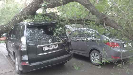 В Оренбурге припаркованный Lexus придавило огромным деревом