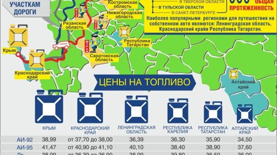Как выбрать бюджетное направление и экономичное авто для отпуска? Викторину среди читателей проводит Sobesednik.ru. Дорогие читатели! Мы не просто представляем вашему вниманию материал с полезными советами, как организовать максимально комфортное путешествие по России, но и проводим викторину на лучший комментарий. Читайте, высказывайте свое мнение в комментариях к этому материалу на Sobesednik.ru, а экспертное жюри выберет авторов самых полезных комментариев, которые получат призы! В нашем призовом фонде: 1 место: тест-драйв на одном из автомобилей спонсора викторины — группы компаний «АвтоСпецЦентр». 2 место: подарочная карта на техобслуживании в одном из центров группы компаний «АвтоСпецЦентр». 3 место: сувенирная продукция концернов группы компаний «АвтоСпецЦентр». Ждем обратной связи и желаем победы в викторине! * * * Советы автотуристам: как выбрать наиболее бюджетное направление и самое экономичное авто для летнего отпуска Интерес к автотуризму у россиян растет из года в год. Ежегодно 10–15% граждан, предпочитающих не выезжать за границу в период отпуска, отправляются в автопутешествия по России. На сегодняшний день автомобильный туризм занимает всего 1% в структуре внутреннего турпотока. Специалисты ГК «АвтоСпецЦентр» проанализировали риски, с которыми сталкиваются автолюбители в отпуске, стоимость проезда по федеральным трассам, цену топлива и выбрали наиболее привлекательные направления для автомобильного путешествия. Эксперты ГК «АвтоСпецЦентр» выяснили, что чаще всего для путешествий по России автотуристы выбирают внедорожники и кроссоверы. Нередко дальние поездки совершают на универсалах, минивэнах и хэтчбеках. Из внедорожников автопутешественники предпочитают Audi Q7, BMW X5 и KIA Sorento, а из кроссоверов более востребованы модели Nissan Qashqai, X-Trail, также популярен Skoda Yeti. Из универсалов наибольшей популярностью пользуются Audi A4 Allroad и Skoda Octavia Combi, из хэтчбеков — Kia Ceed и Skoda Octavia. Наиболее популярными на сегодняшний день регионами для путешествия на собственном авто являются: Ленинградская область, Краснодарский край и Республика Татарстан. Важным фактором при выборе маршрута и являются цены на топливо. Специалисты ГК «АвтоСпецЦентр» проанализировали стоимость бензина в курортных регионах России и выяснили, что самые высокие цены на топливо в Крыму, а дешевле всего заправлять автомобиль в Алтайском крае. Автомобилисты, решившие отправиться в дальнее путешествие, должны помнить, что не все дороги в России — бесплатные. На сегодняшний день платные участки располагаются в восьми субъектах Российской Федерации: Воронежской, Ленинградской, Липецкой, Московской, Псковской, Тверской, Тульской областях и в Санкт-Петербурге. Их общая протяженность составляет 740 км. При этом самый дорогой участок находится на трассе М4 в Липецкой области, тариф на проезд по которому доходит до 480 руб. Помимо этого, автолюбителям необходимо учитывать и наиболее «строгие» регионы с точки зрения штрафов за нарушение ПДД, самый распространенный их которых — превышение скорости. Чаще всего за него штрафуют в Рязанской (85,93%), Костромской (80,53%), Нижегородской (80,31%), Саратовской (80,08%) областях и в Санкт-Петербурге (79,25%). Надо помнить, что автоматический учет штрафов с помощью камер видеофиксации лучше всего отлажен в Москве, Калужской, Тверской и Читинской об