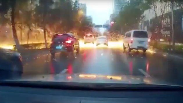 Видео: молния устроила огненный шторм на дороге, полной авто