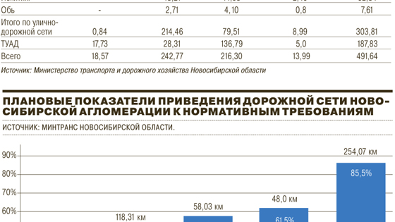 В Новосибирской области стартовал проект «Безопасные и качественные дороги». За счет федерального, регионального и муниципального бюджетов к концу 2025 года планируется реконструировать 577,7 км автомобильных дорог на территории Новосибирской агломерации и ликвидировать 71 место концентрации ДТП. Около 100 км автодорог и 33 аварийно-опасных участка улично-дорожной сети региональный Минтранс и дорожники намерены отремонтировать до конца текущего года. На условиях софинансирования После двухмесячного публичного обсуждения Минтранс Новосибирской области приступил к реализации региональной программы комплексного развития транспортной инфраструктуры, разработанной в рамках федерального приоритетного проекта «Безопасные и качественные дороги», рассчитанного до конца 2025 года. Ключевая цель проекта — приведение в нормативное транспортно-эксплуатационное состояние автомобильных дорог и улично-дорожной сети с учетом соблюдения требований технического регламента Таможенного союза, сокращение числа аварийно-опасных участков не менее чем на 50% к концу 2018 года и на 85% — к концу 2025 года. На данный момент общая протяженность дорожной сети Новосибирской агломерации составляет 1058,8 км. Доля дорог, соответствующих нормативным требованиям к их транспортно-эксплуатационному состоянию на конец 2016 года составляла 327,13 км (около 31%). По словам заместителя министра транспорта и дорожного хозяйства Новосибирской области Евгения Ракова, реализация программы предусматривает три этапа, которые включают в себя как некапиталоемкие мероприятия по обустройству и ремонту дорожной сети, повышению безопасности дорожного движения, так и ряд масштабных проектов, направленных на дорожно-строительные работы по строительству и реконструкции. «Всего за период реализации программы, до 2025 года, запланировано выполнить реконструкцию и строительство 53,5 км автомобильных дорог агломерации, отремонтировать 510,2 км автомобильных дорог и ликвидировать 71 место концентрации ДТП на 14 км автомобильных дорог. Общая протяженность отремонтированных автомобильных дорог к 2025 году составит 577,69 км»,— отметил он. Работы на улично-дорожной сети агломерации запланированы в Новосибирске, Бердске, Искитиме, Оби, наукограде Кольцово, автомобильных дорогах регионального и межмуниципального значения. По соглашению, подписанному в феврале между правительством Новосибирской области и Федеральным дорожным агентством (Росавтодор), в 2017 году в рамках проекта «Безопасные и качественные дороги» регион получил межбюджетные трансферты в размере 1 млрд руб. Софинансирование областного бюджета на эти цели запланировано в том же объеме. «До 2025 года федерация ежегодно будет выделять на ремонт дорог Новосибирской агломерации 1 млрд руб., при этом затраты регионального бюджета будут каждый год увеличиваться. Сначала 1 млрд руб., потом 1,2 млрд руб., и так до 1,4 млрд руб.»,— говорит Евгений Раков. Как ранее комментировал губернатор Новосибирской области Владимир Городецкий, «благодаря оперативному и конструктивному сотрудничеству Минтранса России и подведомственных ему учреждений» Новосибирской области удалось одной из первых в России заключить соглашение о предоставлении в 2017 году межбюджетных трансфертов на выполнение федерального проекта. Комплексный подход По словам н
