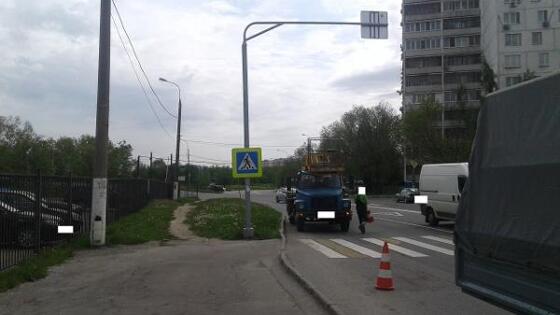 На улице Бусиновская горка поправили знаки «Пешеходный переход»