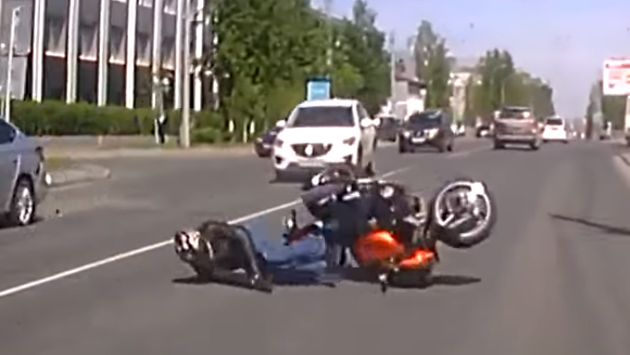Двойное ДТП с участием мотоциклиста произошло в субботу, 27 мая, на пересечении проспекта Ленина и улицы Аркадия Иванова в Томске. Телеканал "360" публикует видео инцидента, произошедшего 20 мая. Байкер не сумел увернуться от легкового автомобиля, водитель которого выехал на траекторию движения двухколесного транспортного средства. После столкновения мотоциклист вылетел на полосу встречного движения, потерял равновесие и упал, а его "железный конь" врезался еще в одну легковушку. О пострадавших в аварии не сообщается.