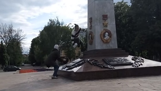 Подростки снимали видео с прыжками на роликах по стеле города-героя Тулы. Инцидент произошел на улице Болдина.Возмущенные прохожие просили их прекратить заезд, однако остановить компанию им не удалось.