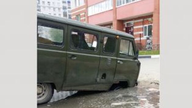 В Ульяновске в одном из дворов по улице Аблукова грузопассажирский автомобиль УАЗ провалился под асфальт. Снимок опубликовали пользователи социальных сетей в группе «ЧП. Ульяновск» вчера вечером. На нём видно, что автомобиль провалился правым передним колесом.