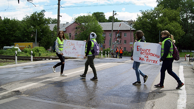 Автоинспекторы, студенты и общественные активисты призвали водителей соблюдать правила безопасности на железнодорожных переездах