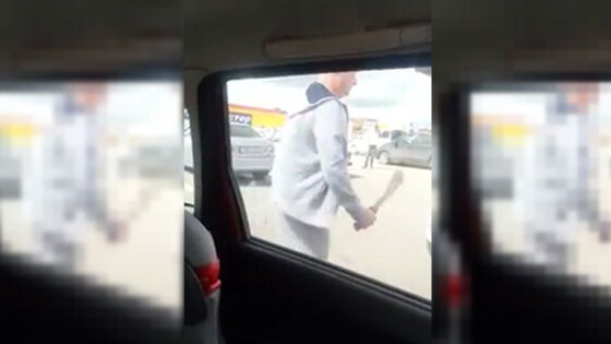 Мужчина с мачете напал на машину с женщиной и ребенком: видео