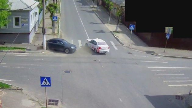 Телеканал «360» публикует запись с камеры наблюдения. ДТП произошло в 14:46 в минувшее воскресенье, 4 июня, на пересечении улиц Красноармейская и Чехова. Водитель неспешно двигавшейся Skoda традиционно для этого места не обратил внимания на знак Stop и выехал на перекресток прямо перед такси. Удар пришелся в заднюю часть иномарки, после чего легковушку развернуло на дороге и отбросило в столб. В аварии, как можно судить по кадрам, никто из водителей не пострадал.