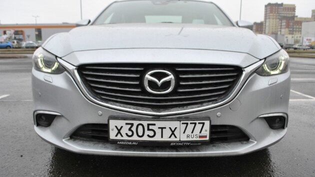 Как снаружи Машины Mazda всегда отличались дизайном, в общем городском потоке их трудно было с кем-то спутать. Вот и Mazda 6 получилась очень стильной и агрессивной. Решетка радиатора обзавелась новым рисунком, а грозные "подковы" светодиодных ходовых огней и изменившиеся обводы переднего бампера добавляют брутальности и агрессивности. Впрочем, и сзади машина смотрится очень азартно и свежо. Японцам удалось взять лучшее от концепта Furai и перенести это в серийный автомобиль. Единственное - Mazda 6 не смотрится в серых и темных цветах. Модель теряет свой шарм и привлекательность. Ей больше всего подходят яркие и насыщенные тона. Тот же красный, который у японской марки просто потрясающий. Как внутри Для тех, кто привык к европейским машинам, интерьер японских авто в основном удивляет и шокирует. Но только не Mazda. Внутри все на своих местах - вам потребуется минимум времени на то, чтобы найти нужные и важные клавиши, подогнать под себя водительское кресло, разобраться с мультимедиа, управление которой происходит с помощью специальной "шайбы". Подогрев сидений или руля здесь не надо искать целую вечность (как у той же Toyota RAV4) - весь функционал справа от водителя на центральной консоли. Автомобиль в комплектации Executive - а это самая топовая версия и именно она была у нас на тесте - порадует черным потолком и отделкой сидений высококачественной кожей Nappa. Черно-белый салон смотрится очень стильно и свежо. Детали приятны на ощупь, просто не к чему придраться. Сзади для двоих пассажиров места достаточно, но вот втроем на дальние расстояния лучше не ездить. Подогрев сидений находится в подлокотнике - это тоже усложняет жизнь большому количеству пассажиров. Как едет В России Mazda 6 продается с двумя двигателями: 2,0 литра мощностью 150 л.с. и 2,5 литра, который выдает 192 "лошадки". Единственная трансмиссия - это шеститупенчатый "автомат". При этом комплектацию Executive можно приобрести только с агрегатом на 2,5 литра. Наша тестовая "шестерка" по паспорту разгоняется до "сотни" за 7,8 секунд. Но здесь не так уж и важны цифры. Главное - звук мотора. И он просто потрясающий. Уже на самых низких оборотах приятное клокотание двигателя заставляет забыть обо всем. А если как следует нажать на педаль акселератора, то создается ощущение, что под капотом уже явно больше 200 "лошадей". Отклик на руль понятный и быстрый, сама "баранка" дает полную информацию о том, что происходит с колесами. При этом коробка отлично синхронизирована с двигателем, они понимают друг друга за миллисекунды. Автомобиль прекрасно входит в повороты, и в этом ему помогает система G-Vectoring Control (GVC) - гордость Mazda. При повороте руля система автоматически снижает обороты двигателя. Эффект торможения мотором загружает переднюю ось, что способствует увеличению сцепления колес с поверхностью. В результате улучшается управляемость. Впрочем, на практике ощутить работу этой системы обычный водитель вряд ли сможет. А вот шумоизоляция не понравилась. Хоть японцы и доработали уплотнители дверей, поставили дополнительную звукоизоляцию потолка, днища и двойные передние боковые стекла в топ-версиях, а шума от шин все равно много. Еще один минус - машина с дисками 19 радиуса очень жестковата. Различные неровности, ямы и лежачие полицейские "шестерка" проходит не так уверенно, как хотелось бы. Впрочем, учитывая нрав Mazda, это можно и 