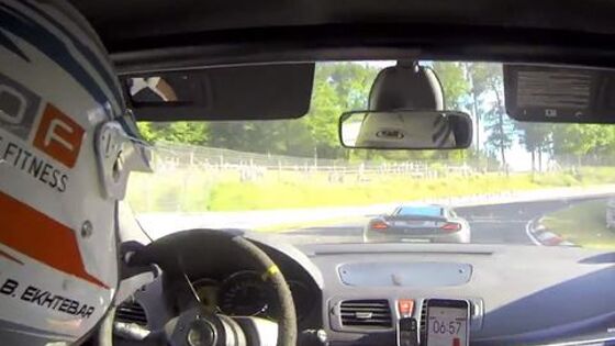 В Сети появилось видео, в котором хот-хэтч Renault Megane RS гоняется на «Северной петле» Нюрбургринга с суперкаром McLaren MP4-12C. При этом на протяжении всего трека французский автомобиль практически не отстает от «Мака», а «британец» отрывается лишь на прямиках. Как говорится в описании к ролику, хот-хэтч в ролике почти на 100 лошадиных сил мощнее обычного «Мегана» 275 Cup и развивает 300 лошадиных сил. Автомобиль весит 1300 килограммов (почти на 80 килограммов меньше базовой машины) и оснащен спортивной подвеской KW. Также в ролике видно, что у «Мегана» установлен каркас безопасности и короткоходная коробка передач. Суперкар McLaren MP4-12C комплектуется 3,8-литровым восьмицилиндровым твин-турбо двигателем мощностью 625 сил и роботизированной коробкой передач с двумя сцеплениями. С нуля до «сотни» автомобиль ускоряется за 3,3 секунды. Его максимальная скорость -- 330 километров в час.