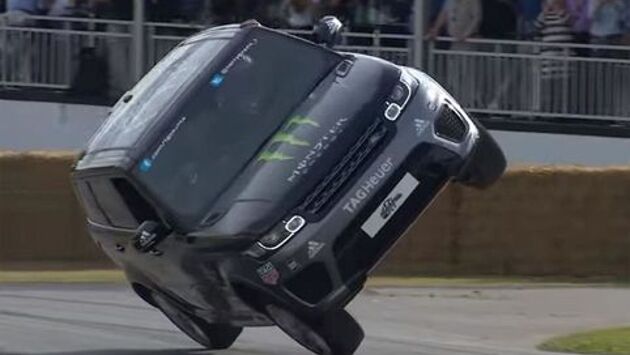 «Заряженный» внедорожник Range Rover Sport SVR проехал трассу Фестиваля скорости в Гудвуде, завершившегося в Великобритании в прошедший уикенд, на двух колесах. За рулем автомобиля находился британский водитель-каскадер Терри Грант. Другой каскадер во время трюка вылез из окна с пассажирской стороны и поприветствовал зрителей. Это уже не первый раз, когда Терри Грант исполняет подобный трюк. В прошлом году он проехал трассу в Гудвуде тоже на двух колесах, но за рулем кроссовера Jaguar F-Pace. При этом в 2015-м каскадер даже установил рекорд по езде на двух колесах: на Nissan Juke RS Грант преодолел 1,86 километра за две минуты 10 секунд. Мировой рекорд Гиннесса по скорости передвижения на двух колесах принадлежит финну Весу Кивимяки. В 2016 году на дизельной «трешке» BMW он разогнался до 186,269 километра в час.