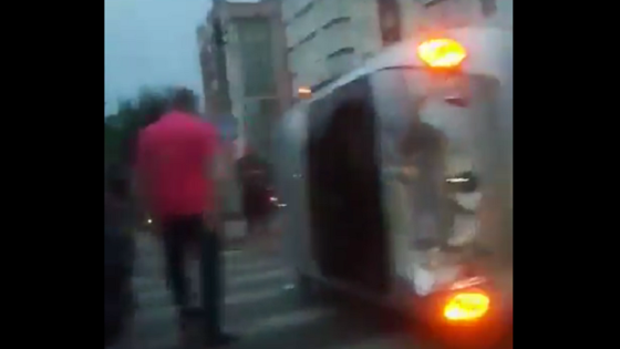 В Пензе очевидец снял на видео опрокинувшийся в центре города автомобиль