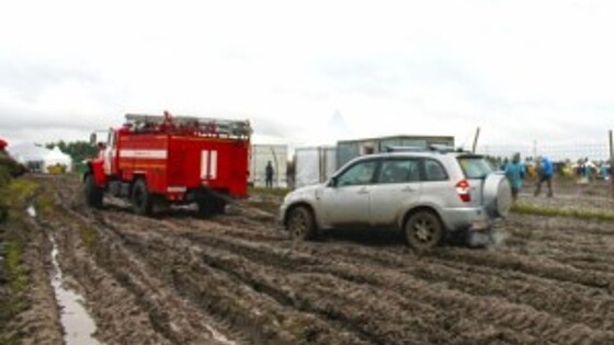 Сотрудники МЧС организовали эвакуацию автомобилей, застрявших на размытой дождем парковке на рок-фестивале «Нашествие» в Конаковском районе Тверской области. Как сообщили ТАСС в региональном Управлении МЧС, при помощи аварийно-спасательной техники отбуксированы более 850 автомобилей. Машины зрителей фестиваля увязли в грязи в зоне парковки из-за дождей. Подъездные пути к ней размыты. Всего на парковке находится примерно 11 тысяч машин. В эвакуации задействованы более 100 человек и 40 единиц пожарно-спасательной техники повышенной проходимости. Сотрудники МЧС прикрепляют тросы машин к пожарным автомобилям, которые вытаскивают их с бездорожья. Очевидцы сообщают, что на месте помощь в выезде с парковки фестиваля оказывают местные жители на тракторах, за свои услуги они берут до 10 тысяч рублей. На месте находятся начальник ГУ МЧС России по Тверской области и министр транспорта региона. Всего в этом году на фестиваль «Нашествие» приехали более 200 тысяч зрителей.