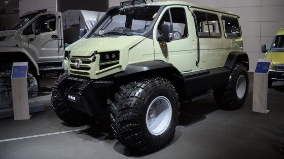 "Группа ГАЗ" показала на выставке "Комтранс-2017", проходящей сейчас в Москве, экспериментальный внедорожник на базе модели "Соболь", а также автомобили "Вепрь Некст". Вездеход-амфибия "Соболь" впечатляет своим внешним видом. Создатели машины надели на кузов стандартного микроавтобуса оригинальную агрессивную "маску" и дополнили машину внедорожными аксессуарами. В пассажирской части салона вместо стандартных сидений разместили два четырёхместных дивана вдоль бортов, но конструкция машины позволяет убрать сиденья и получить большой грузовой отсек. Но самое интересное в этой машине — это ходовая часть, в которой использованы узлы модели "Садко". Экспериментальный "Соболь" имеет портальные мосты, позволившие увеличить дорожный просвет до 53 см. Огромные шины низкого давления оснащены системой подкачки. Привод — подключаемый полный с понижающей передачей и блокировками переднего и заднего дифференциалов. Двигатель остался стандартным: это турбодизель Cummins ISF объёмом 2,8 литра и мощностью 120 л. с. А ещё показанный на выставке "Соболь" умеет плавать: автомобиль получил понтоны спереди и по бокам кузова, а также гребной винт сзади. Пока производить подобную машину ГАЗ не планирует, а вот вездеходы "Вепрь" возможно будут выпускаться мелкосерийно, хотя окончательное решение об этом ещё не принято. Пикап "Вепрь Некст" был впервые показан в конце августа, а на "Комтранс" компания привезла ещё и вариант модели с кузовом универсал. Шасси "Вепря" позаимствовано у грузовика ГАЗ-33088 "Садко": рама, полный привод с жёстко подключаемым передним мостом, самоблокирующиеся дифференциалы, понижающая передача, система подкачки колёс. Кабина — такая же, как у моделей "Газель Некст" или "Газон Некст", но со своим оформлением передка. Двигатель тоже знаком по другим машинам "Группы ГАЗ", это рядный четырёхцилиндровый турбодизель ЯМЗ-534 объёмом 4,4 литра и мощностью 149 л. с. Представители ГАЗа считают, что такой автомобиль может заинтересовать охотников, экстремальных путешественников, компании добывающих отраслей.