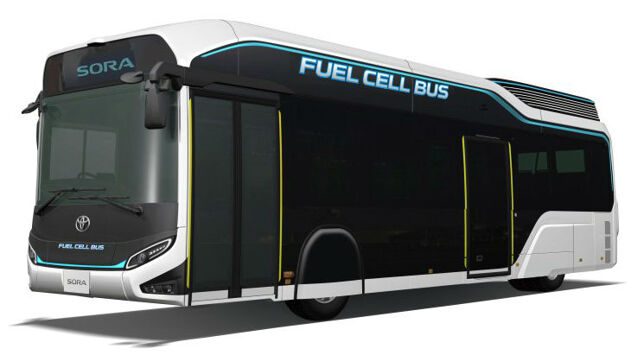 Японская компания Toyota везёт на «домашний» автосалон в Токио-2017 водородный автобус Sora. В недрах экологически чистого транспортного средства скрывается силовая установка, построенная на базе комплекса Toyota Fuel Cell System седана Mirai. Как рассказали представители японской марки, название для автобуса Toyota Sora представляет собой акроним из первых букв слов Sky («небо»), Ocean («океан»), River («река»), Air («воздух»). По замыслу производителя, они являются отсылкой «к круговороту воды в природе». Инновационный автобус Toyota Sora имеет следующие габаритные размеры: 10 525/2490/3340 мм (длина/ширина/высота). Общая вместимость машины (с учётом водителя) составляет 79 человек (22 сидячих места, 56 стоячих и водитель). В салоне водородного автобуса расположены автоматически складывающиеся кресла, благодаря которым освобождается свободное место для детских колясок и инвалидов. В оснащение модели входит несколько камер высокого разрешения, благодаря которым можно наблюдать за обстановкой внутри и снаружи транспортного средства. Также предусмотрена система оповещения водителя. Среди особенностей водородного автобуса Toyota Sora отмечается следующие: мягкий старт с места, исключение непроизвольного ускорения, нет раскачивания на ходу, поскольку нет привычной трансмиссии (отсутствия нужды переключать передачи). Предполагается, что продажи водородного автобуса Toyota Sora начнутся в 2019 году. К 2020 году объём производства транспортного средства должен составит 100 штук. В компании рассчитывают, что автобусы Toyota Sora будут востребованы во время грядущих Олимпийских игр.