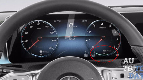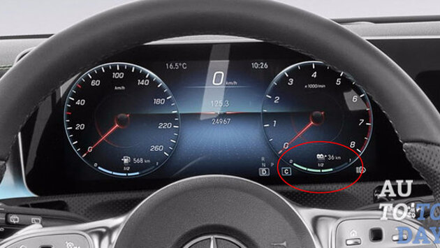 На снимках представляется обновленный руль, стильные вентиляционные отверстия, освещение и один очень важный момент на цифровой приборной панели. На дисплее можно заметить небольшую иконку батареи, отображающую текущий запас хода на электротяге. С фотографий Mercedes-Benz A-Class четко видно, что отметка указывает на 36 км и практически 25% от заряда истрачены. Таким образом, становится понятно, что с максимальным зарядом аккумулятора дальность хода будет равняться приблизительно 50 км. И, стоит отметить, что это достаточно впечатляющие цифры для данной модификации.