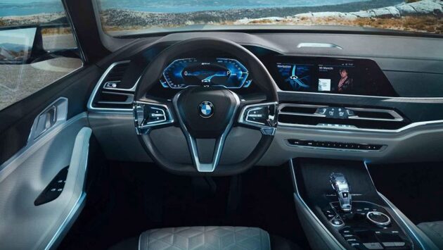 При длине кузова в 5 020 мм концепт BMW X7 получил внушительную колесную базу размером 3 100 мм, что позволит без проблем разместить три ряда сидений (концепт имел схему салона 2+2+2). Если концепт был представлен с гибридной силовой установкой, то серийная версия авто обязательно получит мощные турбированные двигатели с шестью и восемью цилиндрами. Не исключено, что их частично или полностью заимствуют от нынешнего BMW X5.