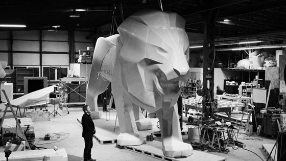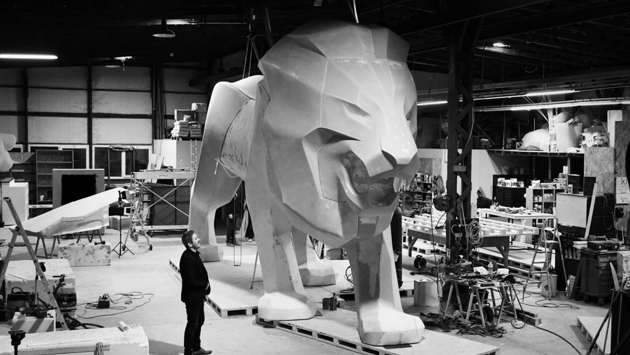 Скульптура, созданная дизайнерами Peugeot Design Lab, насчитывает 12,5 метра в длину и 4,8 метра в высоту. Лев — символ марки с 1858 года — отражал три главных качества пильных дисков, которые компания производила в то время: гибкость, прочность зубьев и скорость резания.