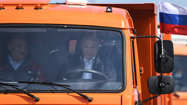 Ранее Путин за 16 минут преодолел на КамАЗе расстояние 19 км по Крымскому мосту, соединяющему Краснодарский край с Крымом.