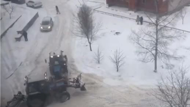 В столице заметили трактористов, которые ударами ковшей пытались вытолкнуть своего коллегу из сугроба. Видеозапись произошедшего была опубликована в среду, 30 января, в сообществе «Москва с огоньком» во «ВКонтакте».