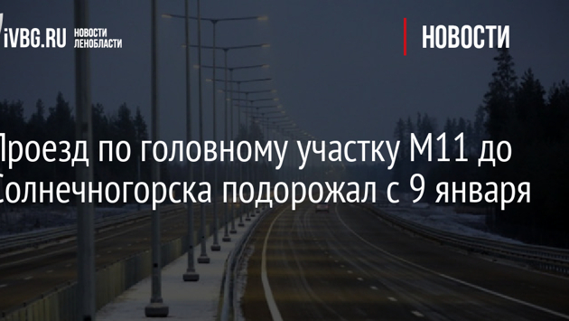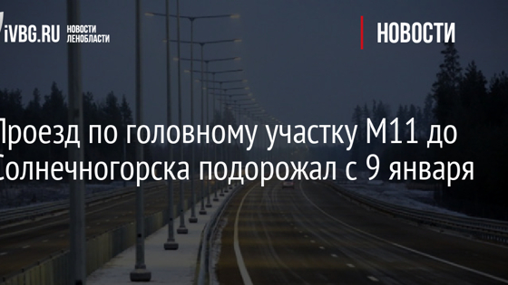 Стоимость проезда по головному участку трассы М11 до Солнечногорская выросла на 10% и составила 600 руб. Об этом сообщили в пресс-службе ООО «Северо-Западная концессионная компания» (СЗКК), которая является концессионером участка. «С 9 января меняются условия проезда по платной дороге по некоторым маршрутам. Изменение тарифов при оплате наличными, банковскими картами и транспондерами других эмитентов. Стоимость проезда по дороге меняется в зависимости от маршрута и времени поездки. Диапазон корректировки тарифов для легковых автомобилей (транспортных средств группы 1) составит от 10 до 50 руб. При этом тарифы на большую часть маршрутов останутся без изменений. Например, стоимость проезда от Москвы до Шереметьево-2 (терминалы D, E и F) в дневное время вырастет на 10 руб. и составит 320 руб., также возрастет тариф от Москвы до Солнечногорска днем в будние дни на 50 руб. и составит 600 руб.», - говорится в сообщении. Уточняется, что стоимость маршрута из Москвы в Зеленоград, в Шереметьево-1 (терминалы A, B и C), а также всех маршрутов из Зеленограда, Шереметьево-1 и 2, частично от Московского малого кольца (А107) и Солнечногорска, останется на прежнем уровне. «Изменение тарифов при проезде с транспондером М11: снизится стоимость проезда для легковых автомобилей между терминалами аэропорта Шереметьево, пунктами взимания платы (ПВП) Шереметьево-1 (A,B,C) и ПВП Шереметьево-2 (D,E,F), и составит 50 руб. вместо 75 руб. Большая часть тарифов на маршруты из Зеленограда и Шереметьево-1 и 2 останется на прежнем уровне», - добавили в пресс-службе. Также частично изменится стоимость проезда из Москвы в Зеленоград (увеличится на 10 руб.), Шереметьево-1 и 2 (увеличится на 20 руб.), ММК (А107) и Солнечногорск, от ММК (А107) в Москву, Зеленоград и Солнечногорск. Диапазон корректировки составит от 10 до 60 руб. «Например, стоимость проезда от Москвы до Шереметьево-2 (терминалы D, E и F) в дневное время вырастет на 20 руб. и составит 300 руб., также возрастет тариф от Москвы до Солнечногорска днем в будние дни на 50 руб. и составит 500 руб. Проезд с транспондером М11 остается самым выгодным и быстрым способом проезда по платной дороге. При этом абонемент позволяет экономить до 50% от тарифа при оплате наличными или банковской картой», - пояснили в компании. Там добавили, что изменения коснутся тарифов на проезд транспортных средств группы 2, 3 и 4.