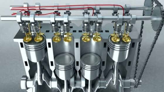 На первом этапе из верхней точки поршень движется вниз, Когда же он находится в нижней точке, в цилиндр подается топливо. Далее поршень начинает движение вверх, сжимая при этом топливо. Осуществляется нагрев. В верхней точке свеча дает искру и топливо воспламеняется. Это создает толчок, опускающий поршень обратно вниз. Финальная стадия - поршень опустился вниз и газы выходят через выпускной клапан.