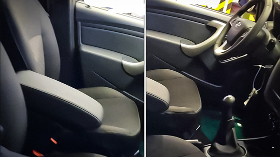 На шпионских снимках одного из таких образцов видна передняя панель, оформленная в духе Renault Duster. Экран мультимедийной системы, так же позаимствованный у «Дастера», остался за кадром – его можно рассмотреть на более ранних фотографиях. Руль новый Largus позаимствовал у Lada Vesta.