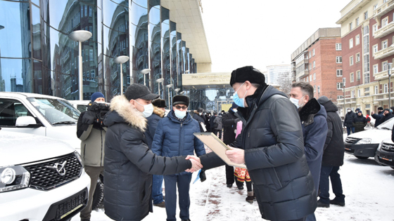 Внутри – кондиционер, удобные сиденья. Машина не увязнет в грязи, высокая проходимость. На площадке рядом с правительством около двух десятков автомобилей. Ключи вручают не только аграриям.