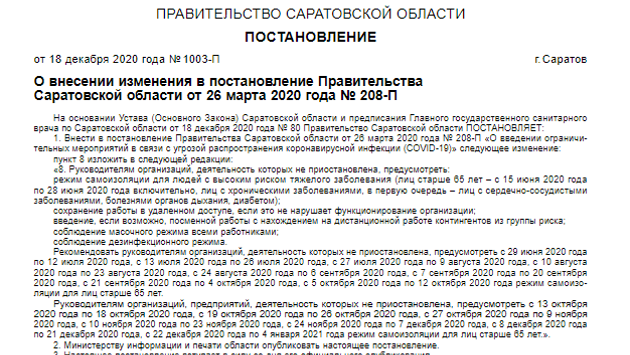 Режим самоизоляции в Саратовской области продлен до 4 января