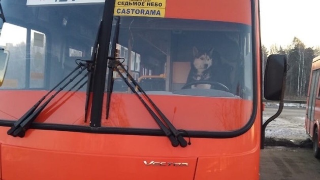 Если судить по фотографии, опубликованной очевидцем в группе «Нижний Новгород. Без цензуры» утром 21 декабря, хаски все еще катается на автобусе. Но на этот раз ее засняли уже не на месте кондуктора, а прямо за рулем.