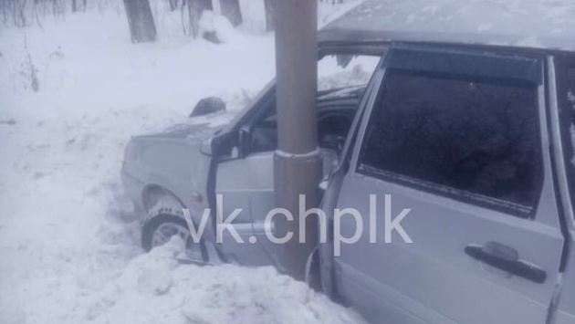 Отечественный автомобиль врезался в столб в кузбасском городе