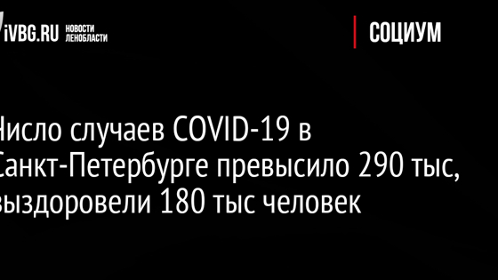 Число случаев COVID-19 в Санкт-Петербурге превысило 290 тыс, выздоровели 180 тыс человек