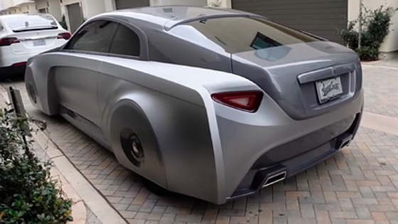 Помимо этого на заднюю часть машины механики добавили дополнительные изгибы и установили треугольные фары. Вдобавок колеса Rolls-Royce обрамили кузовными панелями, а диски скрыли под накладками.