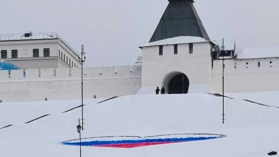 Ко Дню всех влюбленных под стенами Казанского Кремля появился российский триколор в форме сердца. Его нарисовали участники патриотической организации "Молодая Гвардия". Так они решили выразить свою любовь к Родине.