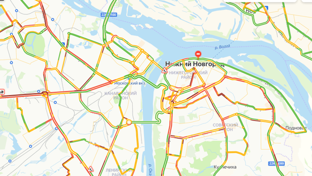 Десятибалльные пробки зафиксированы в Нижнем Новгороде вечером 17 февраля