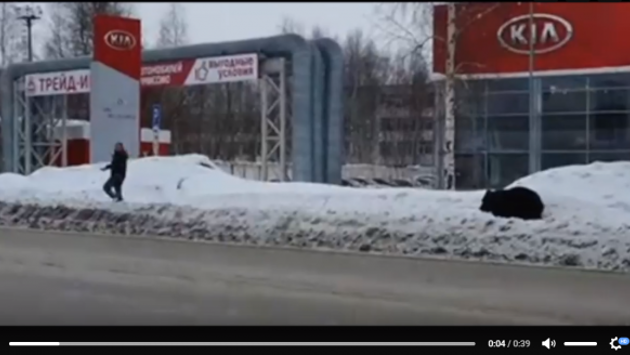 Ранее в социальных сетях была опубликована видеозапись, согласно которой медведь пытается догнать одного из прохожих на улице, а также напасть на другого мужчину, бегает по улице, и пытаясь пересечь дорогу попадает под автобус, после чего убегает.